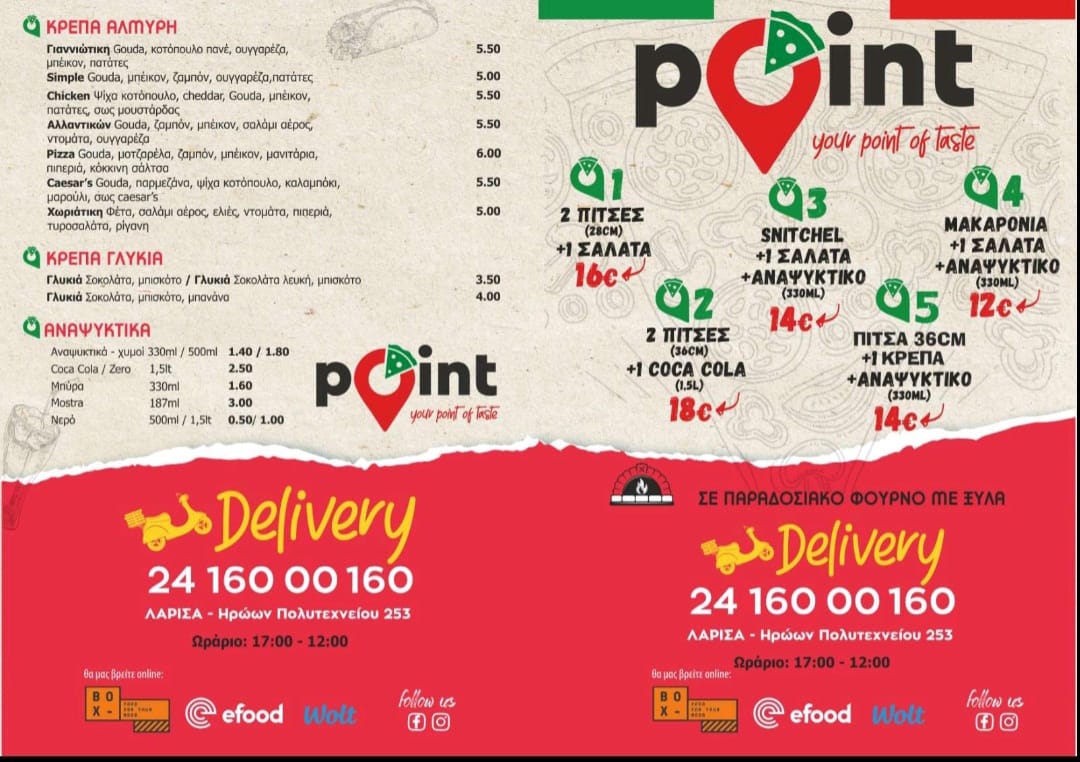 ΠΡΟΣΦΟΡΑ ΑΠΟ ΤΟ ΚΑΤΑΣΤΗΜΑ POINT PIZZA and PASTA