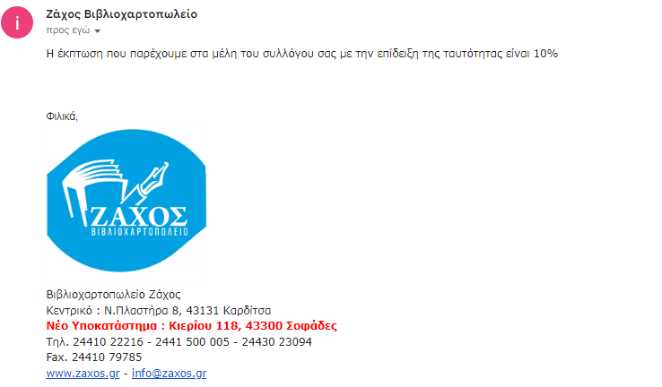 ΠΡΟΣΦΟΡΑ ΒΙΒΛΙΟΠΩΛΕΙΟΥ ΖΑΧΟΣ ΣΤΗΝ ΚΑΡΔΙΤΣΑ